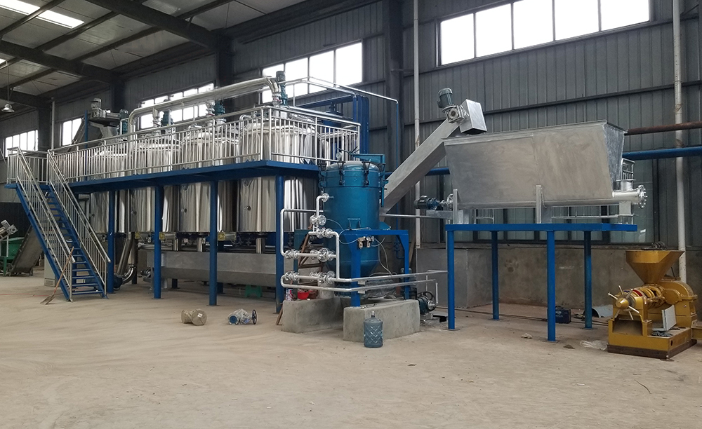 工藝流程:毛油→水化脫膠→水洗→干燥→干法脫膠→脫色→過濾→除氧→換熱→加熱→物理脫酸→延時(shí)脫色→加熱→脫臭→換熱→冷卻→成品油
